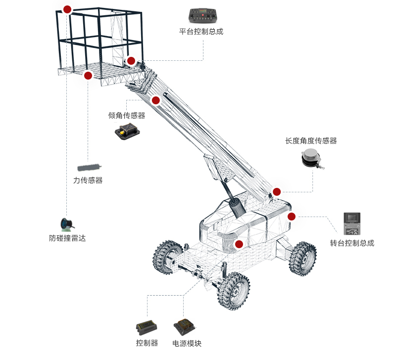 NG娱乐直臂式高空作业平台配备智能控制技术和安全监测装置,通过采集AI模拟量、DI数字量并结合运动算法后,对PWM信号、DO信号进行自动化控制,从而在安全的范围内实现各种自动功能,确保作业平台在高度作业中的精确定位和安全稳固。适用于高层建筑、大型设施维护等场景。